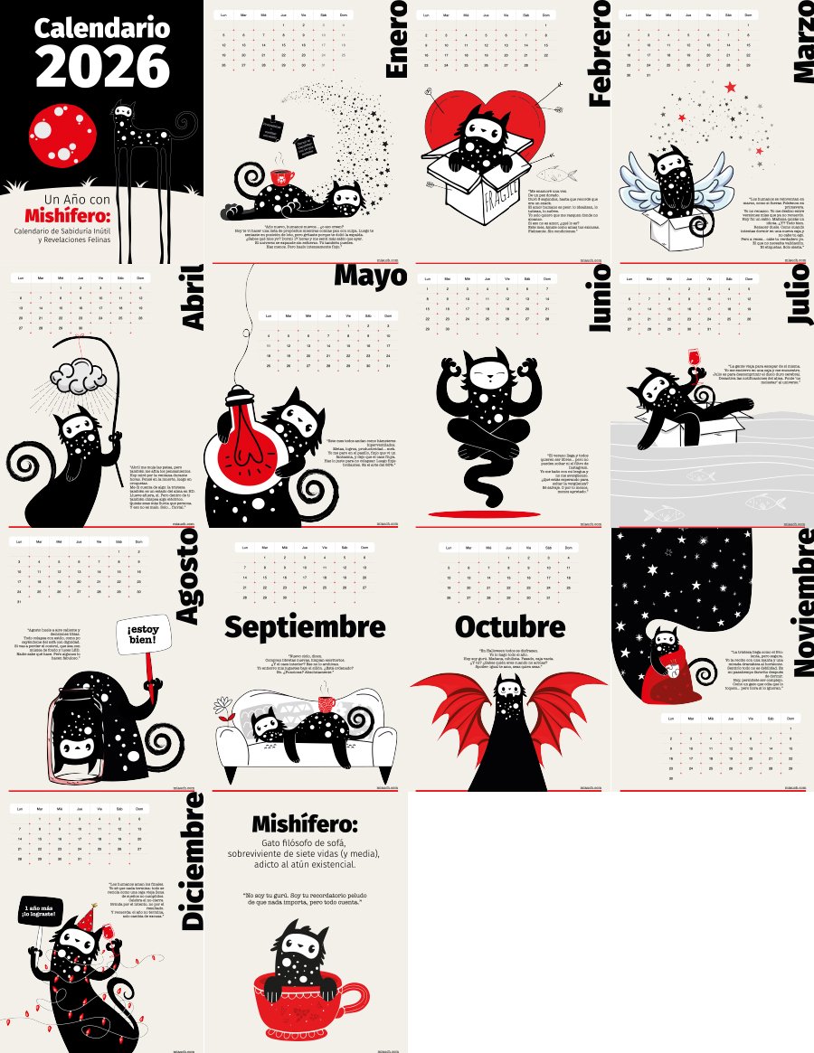 Olvídate de los calendarios aburridos. Este 2026 vas a sobrevivirlo acompañado por un gato irreverente, existencialista y un poquito dramático (pero con mucho estilo).
